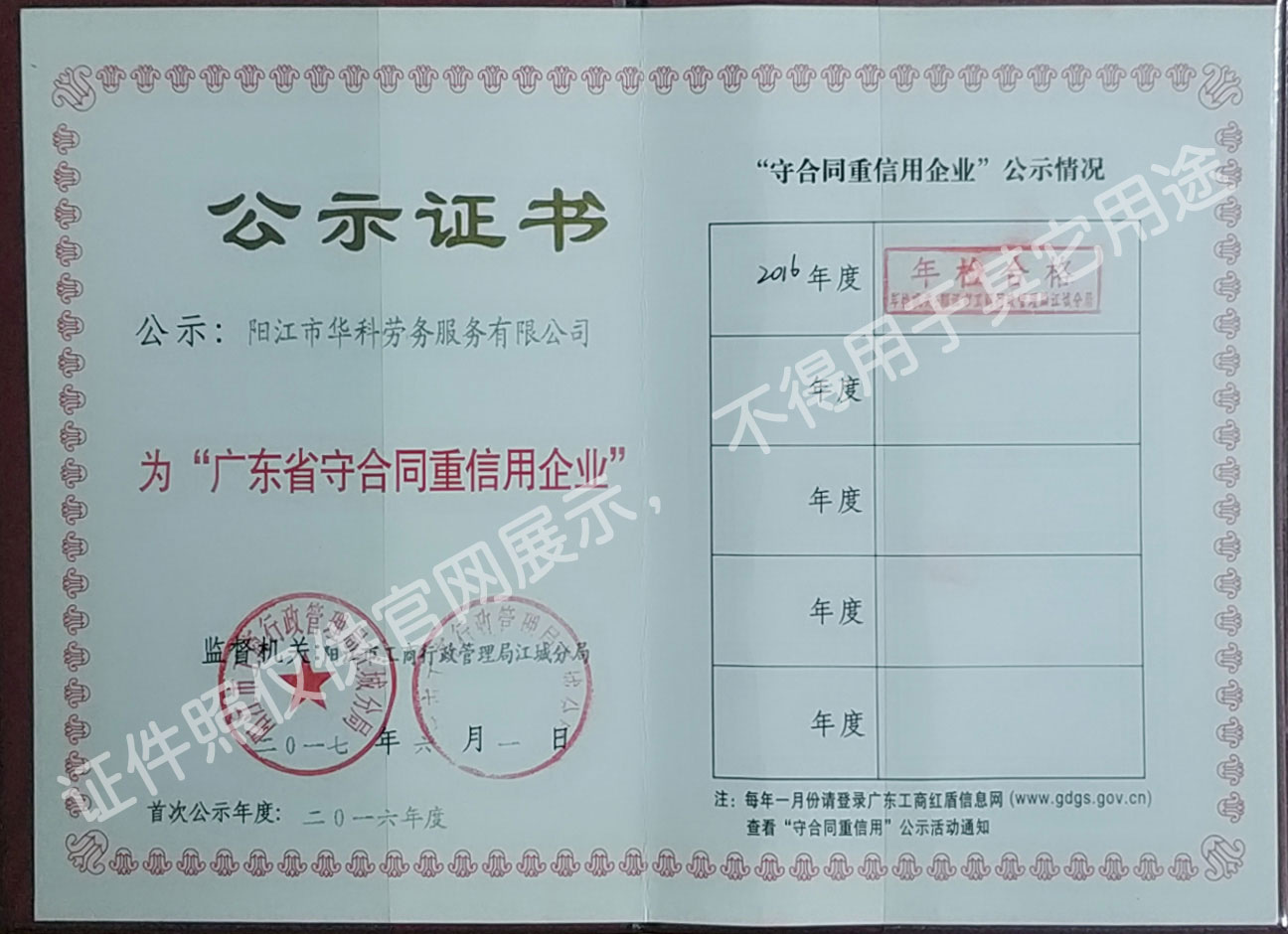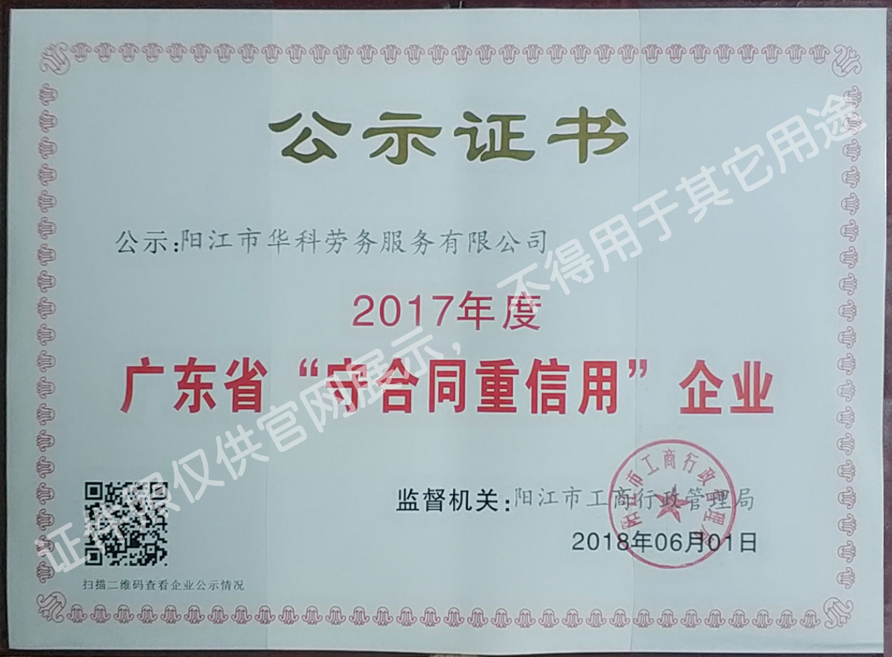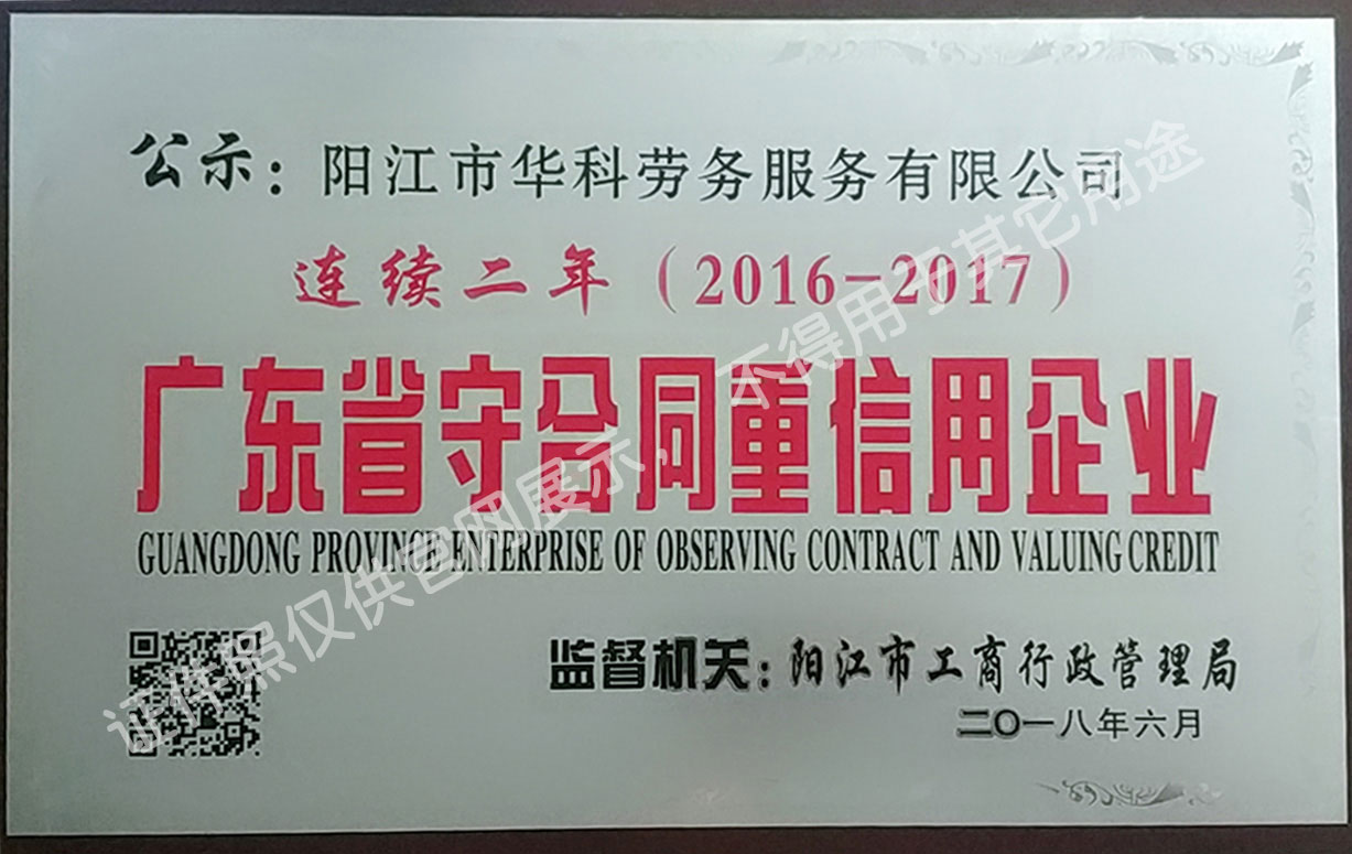 華科勞務(wù)服務(wù)有限公司是專業(yè)從事人事代理、勞務(wù)租賃、人力派遣及管理的綜合性服務(wù)機構(gòu),是首批獲得廣東省人力資源廳、陽江市勞動和社會保障局頒發(fā)人力資源許可證的合法單位。公司秉承“誠信務(wù)實、專業(yè)熱情、滿意第一、服務(wù)社群”的經(jīng)營理念,在勞務(wù)派遣業(yè)務(wù)的基礎(chǔ)上,更致力于合同制工人(臨時工、實習生、假期工)方向發(fā)展,為用工企業(yè)及時輸送合格的各類人才,合理調(diào)配人力資源的有序流動,幫助求職者尋求更加滿意的就業(yè)渠道和崗位,切實維護求職者的合法權(quán)益。
